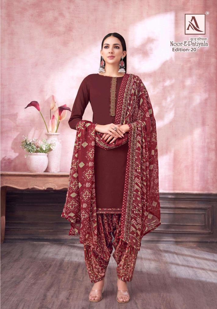 | Other Detail | Alok Noor E Patiyala Vol 20 dress material wholesalers in India 👚 Top: Pure Zam Dyed With Exclusive Embroidery Work 👖 Bottom: Pure Soft Cotton Digital Style Patiyala Print 🏳️ Dup: Pure Nazneen Chiffon Print RATE:549❌ 8 pcs+ 5 %GST (A 2007) |