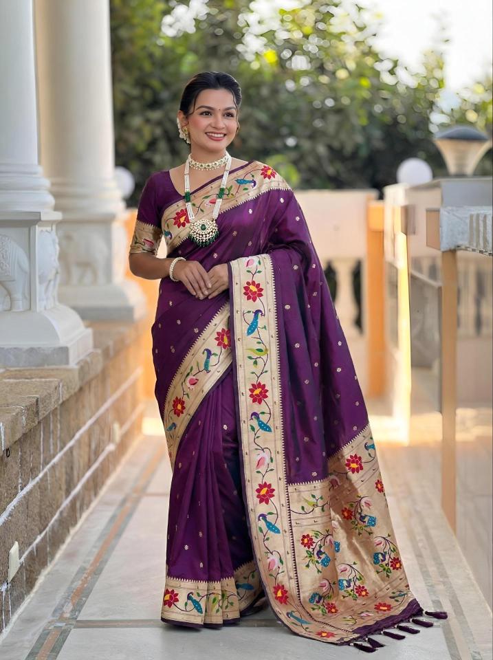 | Other Detail | Anupama lotus vol -1 Designer saree manufacturers Fabric Detail :- Saree :- Soft Pethani silk saree with zari weawing Motifs design and Meenakari weawing Rich pallu with Meenakari weawing swan border & Tessels attached at Pallu end. Blouse :- Silk weawing blouse piece with sleeve border Rate : 1599/- 😊 9 Beautiful Colours. 2045 |
