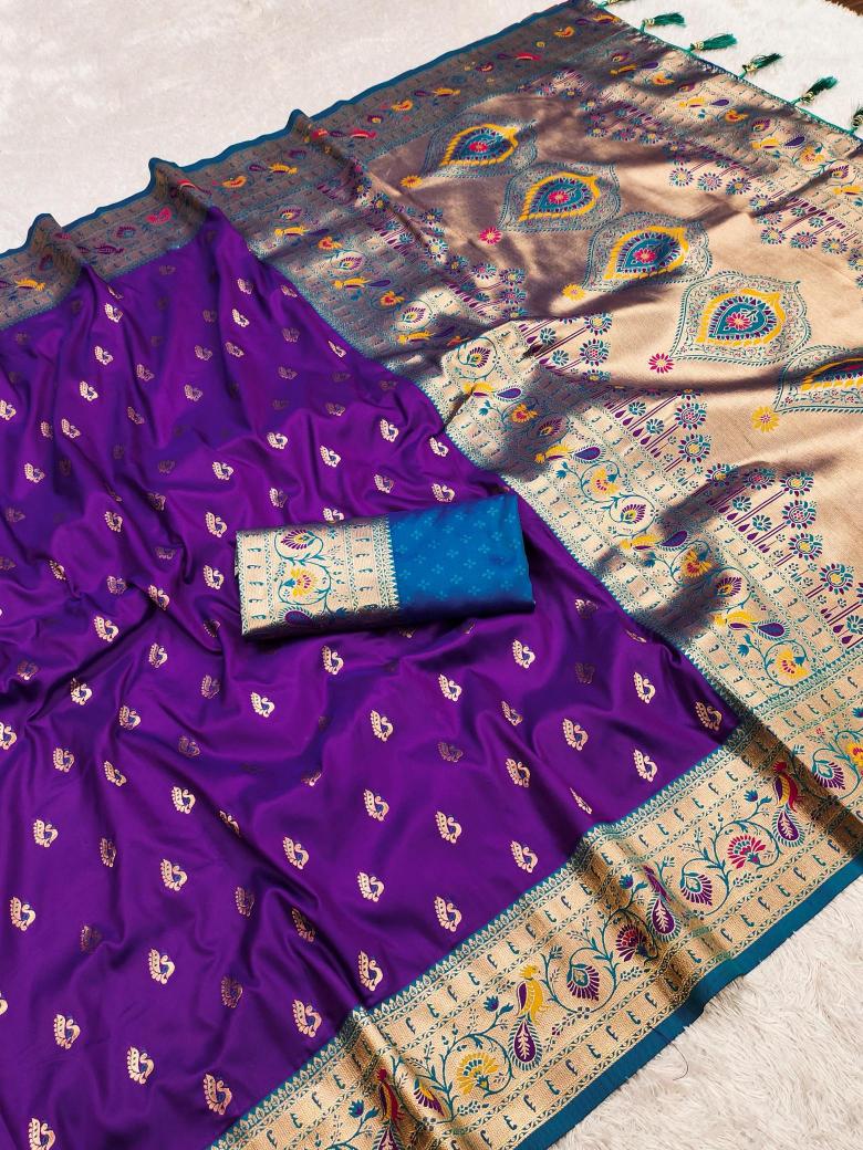 | Other Detail | Anupama royal paithani-2 Saree wholesale market in Hyderabad Fabric Detail :- Saree :- Soft Pethani silk saree with zari weawing Meenakari motifs design and Meenakari weawing Rich 🦚 pallu with Meenakari weawing peacock border & Tessels attached at Pallu end. Blouse :- Silk weawing contrast blouse piece with sleeve border Rate : 1399/- 😊 8 Colours Available 2045 |