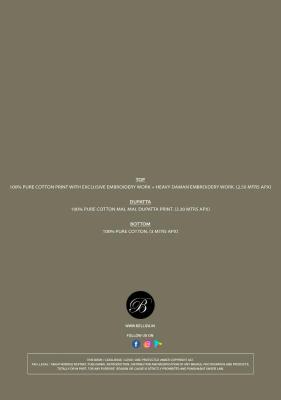 | Other Detail | Belliza designer studio yasmin vol 2 Indian dress materials online 🔺Top: 100% Pure Cotton Digital Prints with Exclusive HEAVY EMBROIDERY NECK + ATTACHED DAMAN ORGANZA HEAVY EMBROIDERY (2.50 mtrs apx) 🔺Dupatta: 100% Pure MAL MAL Cotton Dupatta Print (2.30 mtrs apx) 🔺Bottom: 100% Pure Cotton (3 mtrs apx) 🔺Pcs: 08 🔺 Rate: 625/- 7040 |