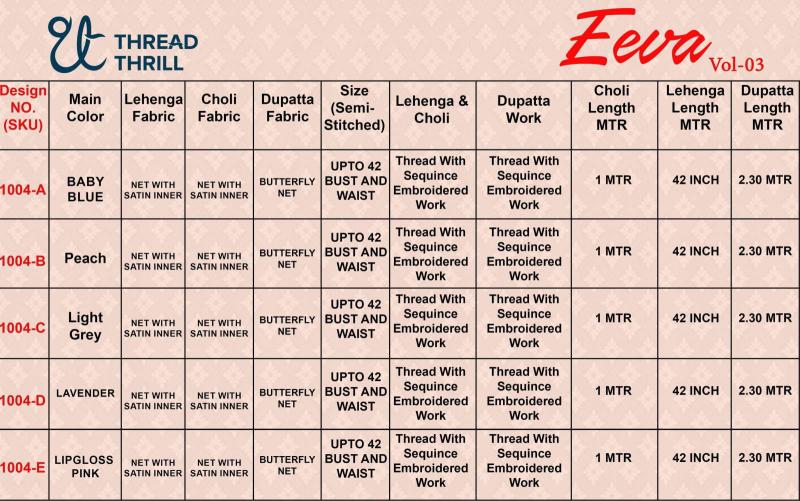 | Other Detail | Eeva Vol 3 Lehengha choli fabric wholesalers in India