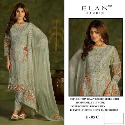 | Other Detail | Elan studioTM E-05 Bulk Salwar Kameez manufacturers TOP - CHIFFON HEAVY EMBROIDERED WITH HANDWORK & CUTWORK RATE - 1599₹ 4 PCS IN SET 7040 |