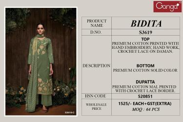 | Other Detail | Ganga bidita 3619 Cotton dress materials in Kolkata TOP BOTTOM DUPATTA 7031 |