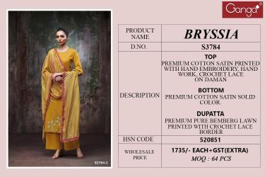 | Other Detail | Ganga bryssia 3784 Cotton dress materials wholesale TOP BOTTOM DUPATTA RATE: 7031 |