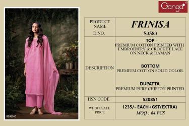 | Other Detail | Ganga frinisa 3583 Fancy dress material wholesale TOP воТТоМ DUPATTA 7031 |