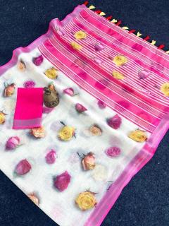 | Other Detail | GC soft lenin silver zari patti Wholesale saree market in Mumbai FABRIC : SOFT LENIN DESIGN : SOFT LENIN WITH SILVER ZARI PATTI AND PALLU HAVE TASSELS BLOUSE : DIGITAL PRINT 7064 |