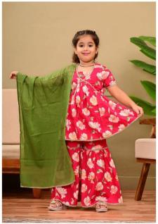 | Other Detail | Karma kids 10 Wholesale Kurti suppliers in India Girls Cotton Kurta Sharara & Dupatta Set 7040 |