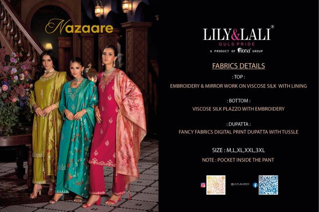 | Other Detail | Lily & lali nazaare Wholesale kurtis online shopping 🛄Top 👗 - Embroidery & Mirror Work On Viscose Silk With Lining. 🛄Bottom👖 - Viscose Silk Plazzo With Embroidery 🛄Dupatta 🏳️🌈 - Fancy Fabrics Print Dupatta With Tussle