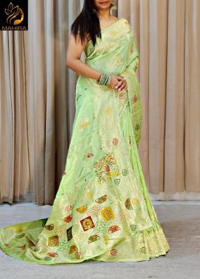 | Other Detail | Malhar premium festival best wholesale saree market in delhi Price Only :- 2050.00/-Wow Rate Beautiful Pure Mashru Silk Saree With all over Heavy Menna Kari Weaving Design Along With Necklace Designed Weaving border Heavy pallu with multicolour thread work Plain blouse With Zari Border 2048 |