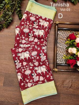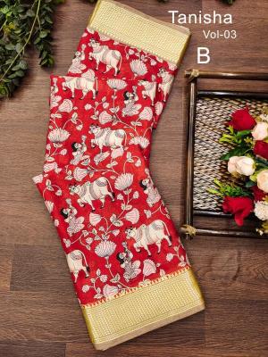 | Other Detail | Mukunda-vol-2 Wholesale saree suppliers in Hyderabad 9 Inch Gold Zari Pencil Jacqrad Weaving Pattu Border Dola Silk Fabric Digital Kalamkari Printed Saree 👉🏻 VERY EXCLUSIVE Handloom Silk called kanchi Boder Dola Silk Fabric WITH Kalamkari PRINTING SAREES WITH Zari Weaving Pattu Border Pallu & Attached Blouse