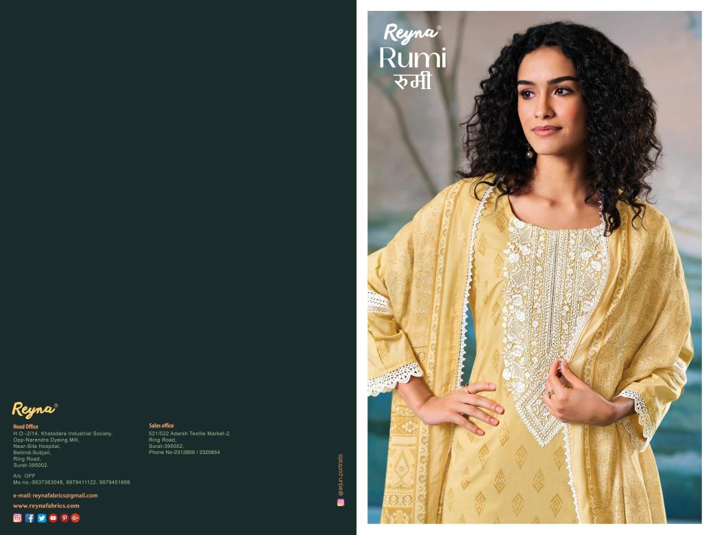 | Other Detail | Reyna rumi Latest dress material wholesale in Bangalore TOP BOTTOM DUPATTA 7031 |