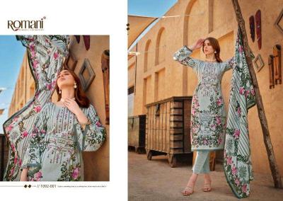 | Other Detail | Romani Aarzu Vol 9 dress material wholesale manufacturers in India 🔸 Top: Premium Soft Cotton Digital Style Print with Heavy Embroidery Work. (2.50 mtrs) 🔸 Dupatta: Soft Cotton Mal mal dupatta. (2.30 mtr) 🔸 Bottom: Soft Cotton Salwar. (3 mtrs apx) 🔸️Pcs: 08 🔸️Rate: 351/- (KT 2040) |