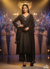 | Other Detail | Sahilprints v neck Designer kurtis in bulk Pure viscose crape designer black salwar kameez set with beautiful mirror work on neck and sleeves With pure crape dyed pants and pure crape dyed dupatta with latkans Sizes- M L XL XXL Rate: 1880/- 7031 more products:- indian kurti sets online |