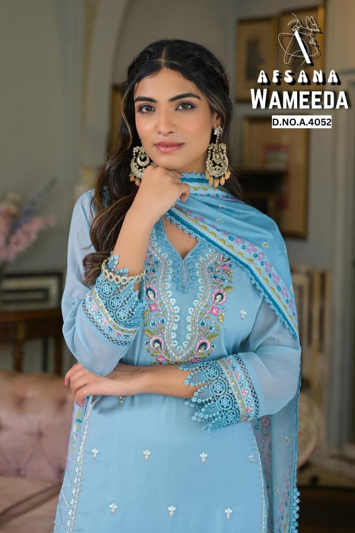 | Other Detail | Wameeda afsana Wholesale Kurti online in surat Disant or different Designer suit Collection by AFSANA Luxury Preet collection in Tunic pant style Fabric:- Bottom:— Star Jorjet with lace SIZE :- L XL XXL 3XL 7031 |