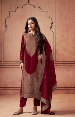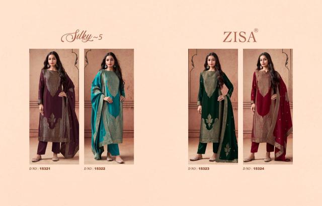 | Other Detail | Zisha Silky Vol 5 Catalog wholesale suits Brand - Zisha Top : Bamberg Silk jacquard Dup: Bamberg silk jacquard Bottom: Viscose santoon (S 2031)